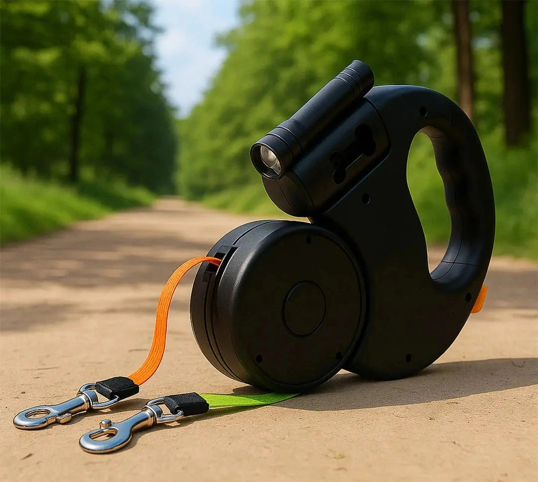 Of het nu een ochtendrondje of avondwandeling is – met deze hondenriem heb je altijd de controle. Geen chaos, geen stress. Alleen jij, je honden en een fijne wandeling.